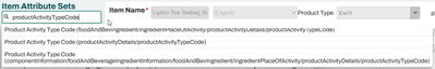 As long as a retailer (Sysco in this case) is asking for specific attributes, you can then use the Item attributes sets search on your item page to locate and populate your attributes as required. For example: