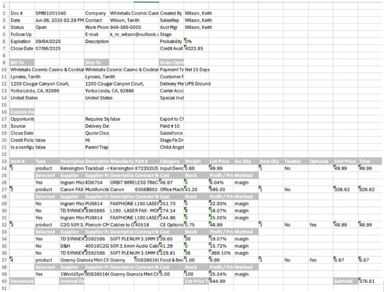 Export Lines - This export includes only line details but uses the same format that we use for Generic Config Import. This makes it easy to make config import changes by exporting what items are already on the quote, then adding items, changing costs, quantity, and price, and turning it around to re-import back into the quote (or even a new quote).