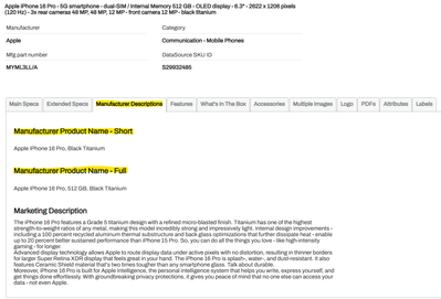 Marketing Components Marketing Description Marketing Description is the manufacturer’s original marketing text which provides the highlights about the product. 1WorldSync Content Solutions does not translate marketing text since it is captured direc...