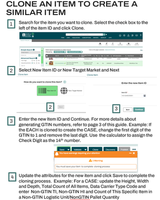 1WorldSync offers different training materials including Quick Sheets to help you successfully synchronize your product content from IM.   How to ADD a Product in Item Management - Quick Sheets How to CLONE a Product in Item Management - Quick Sheets...