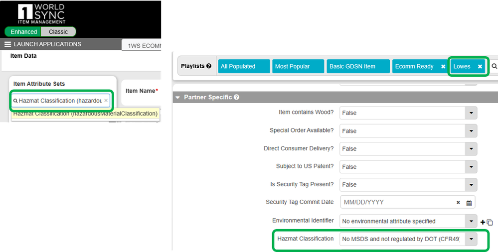 Please populate the attribute on each level of your GTIN hierarchy. In Enhanced Item Management (EIM), select the Lowe’s Playlist and search for the attribute. EIM will present the attribute to you.