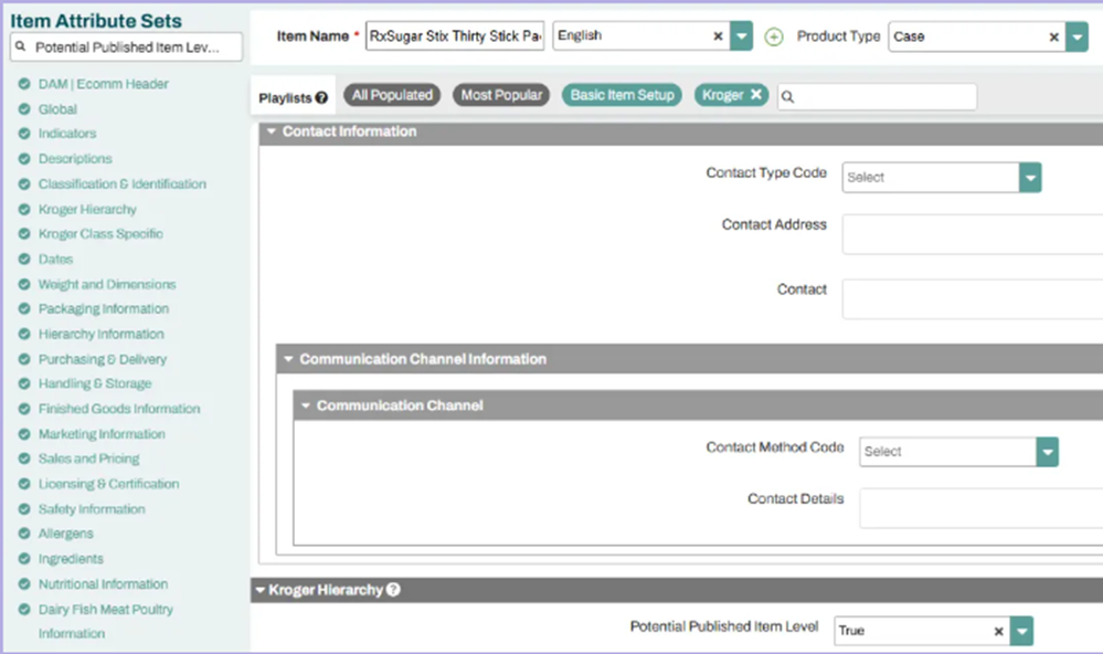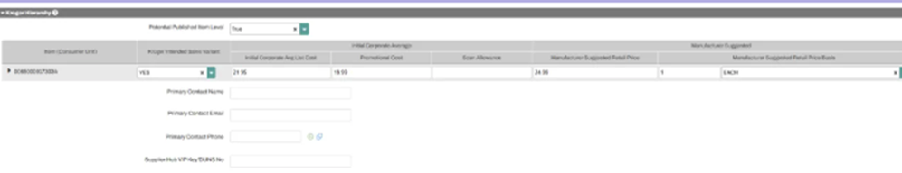 - Set Potential Published Item Level to "True." (This allows you to populate the Kroger Intended Sales Variant.)